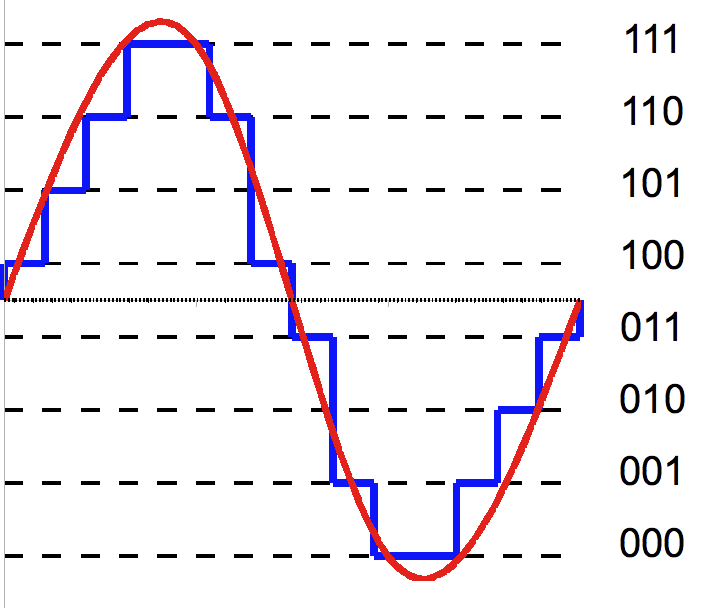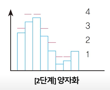 표본화된 각 점을 진폭에 따라 어느 정도의 정밀도로 표현할 것인지 정하는 과정, 값을 이산적으로 만드는 것을 양화자라고 한다.