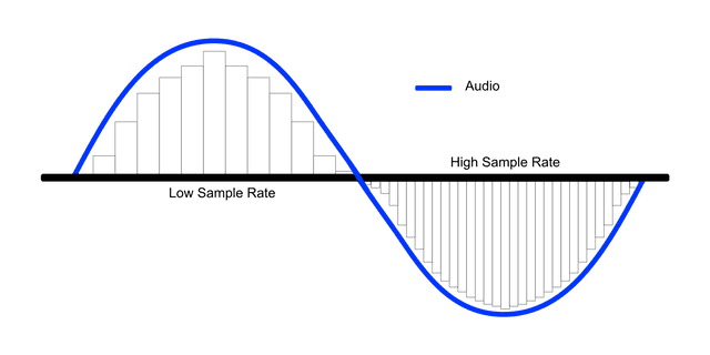 보통 CD의 음질이 44.1kHz, TV나 라디오 방송이 48kHz의 샘플 레이트를 가진다. 이는 1초에 44,100번, 48,000번 샘플을 측정한다는 뜻이다.