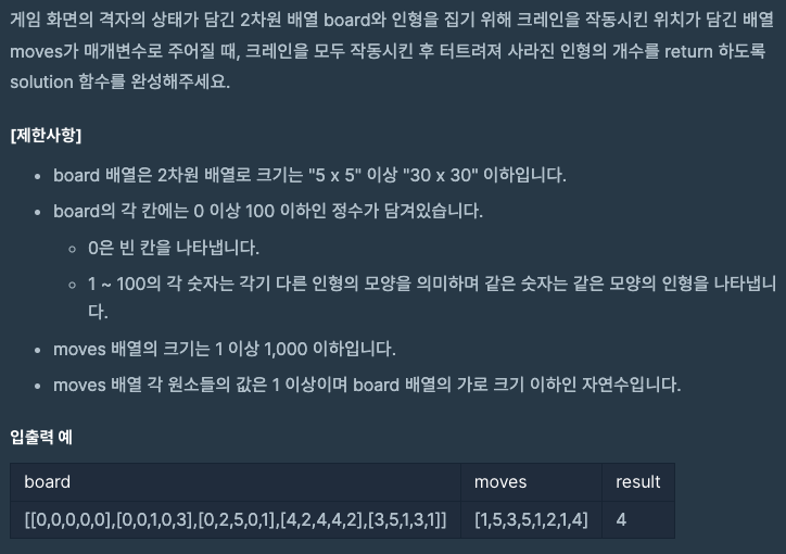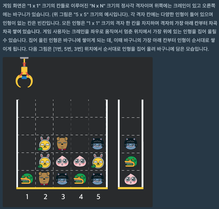 [프로그래머스] 2019 카카오 개발자 겨울 인턴십 | 크레인 인형뽑기 게임 본문