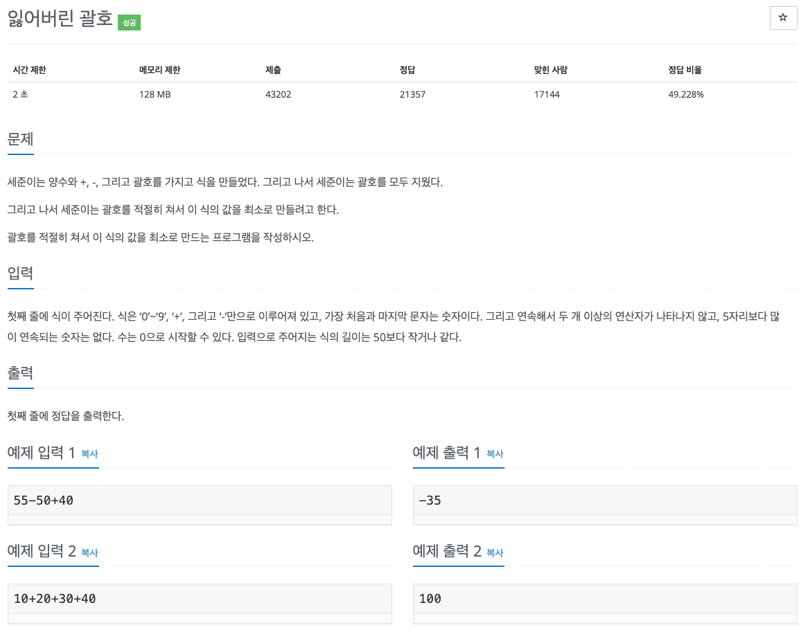 - 괄호를 적절히 쳐서 주어진 식의 값을 최소로 만드는 문제