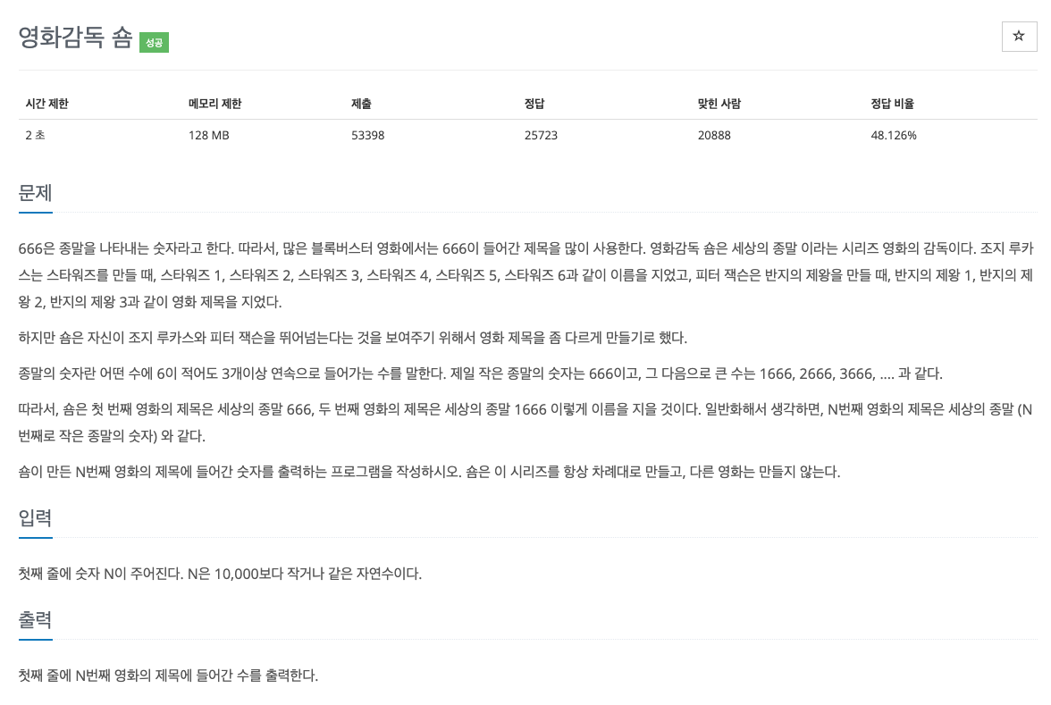 - 숌이라는 영화감독이 666이라는 제목으로 작품을 만들어간다 할 때, N번째 작품명을 출력하는 문제
