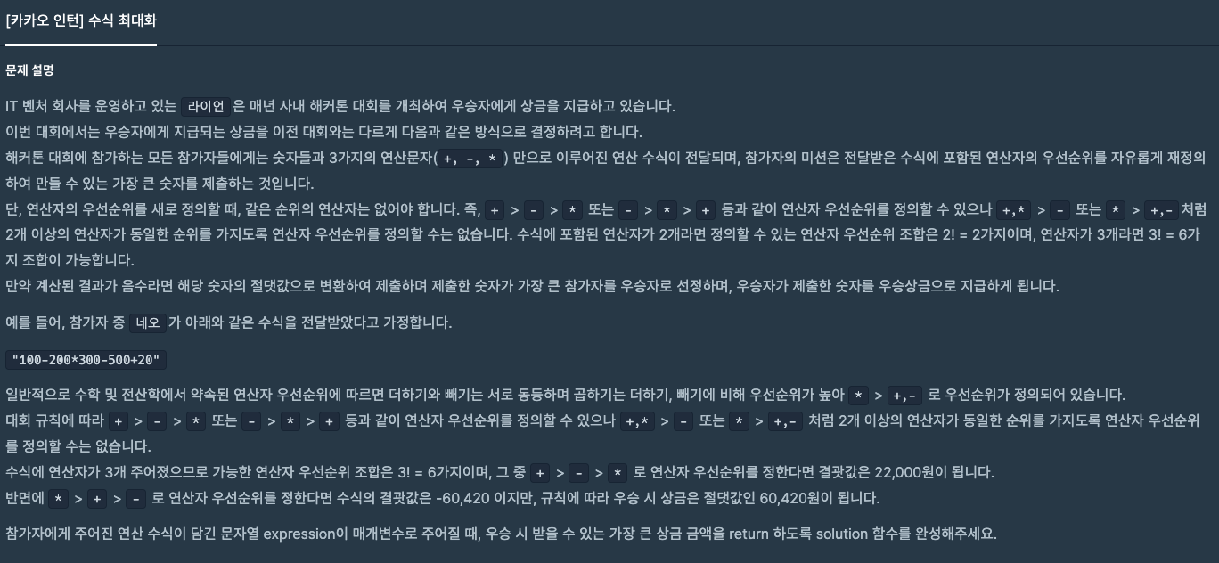 [프로그래머스] 카카오 인턴 | 수식 최대화 본문