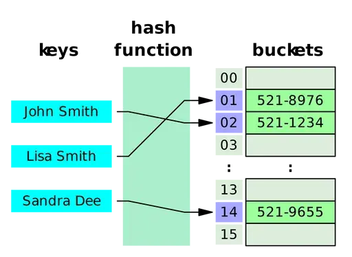 - 만약 위의 그림에서 John Smith(key)를 hash function을 적용하면 02라는 해시 값을 얻는다.